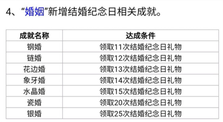 上面的是各位玩家的角色在游戏中结婚后可以获得的相关成就。这里面最顶级的成就是需要各位玩家领取25次结婚近日礼物的,这样可以达到银婚的成就。梦幻西游已经运行了21年的时间了,也就是在梦幻西游这种理论上是可以有玩家拿到瓷婚成就的。但是这仅仅只是理论,实际操作起来是比较难的,因为这里的成就不是需要各位玩家爱的角色结婚20年,而是需要领取20次结婚纪念日礼物。小编想问一下在座的各位玩家,有没有谁能够拿到瓷婚的成就?